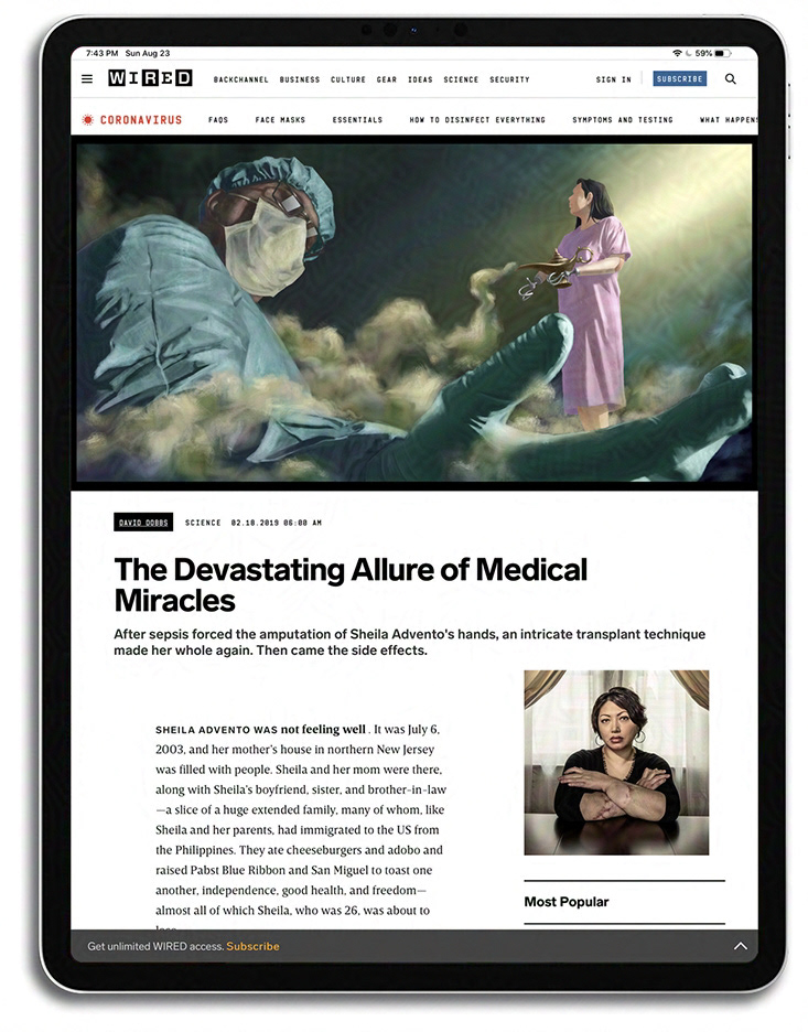 Below is my illustration placed into the Wired article, in place of the original photography that was used.