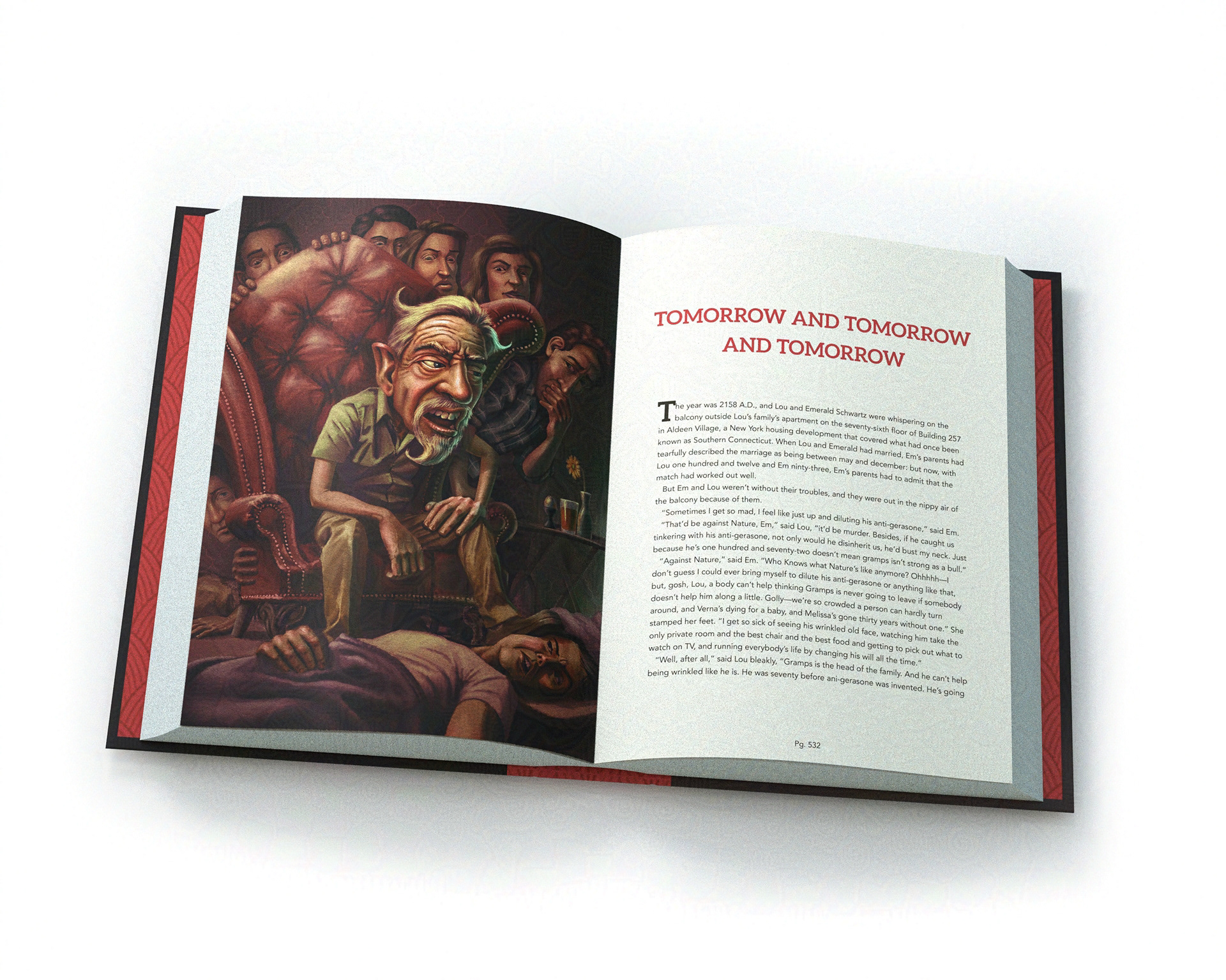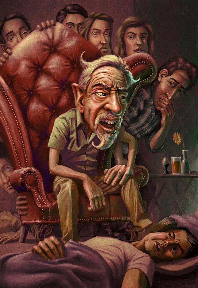 The idea behind this illustration is Hell on Earth, with the patriarch of the family, "Gramps," being the ruler of hell.