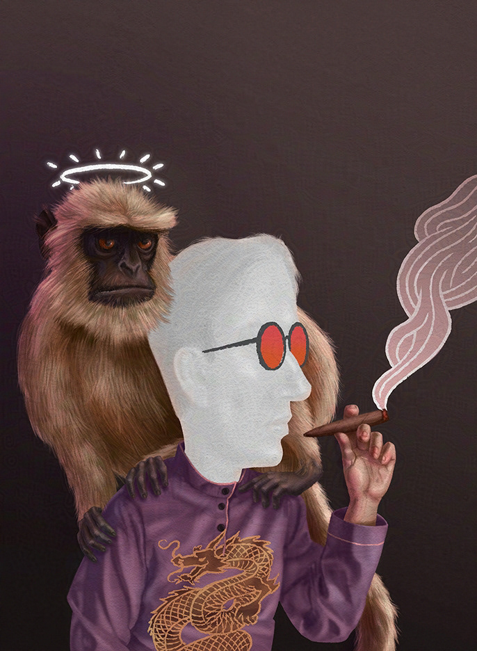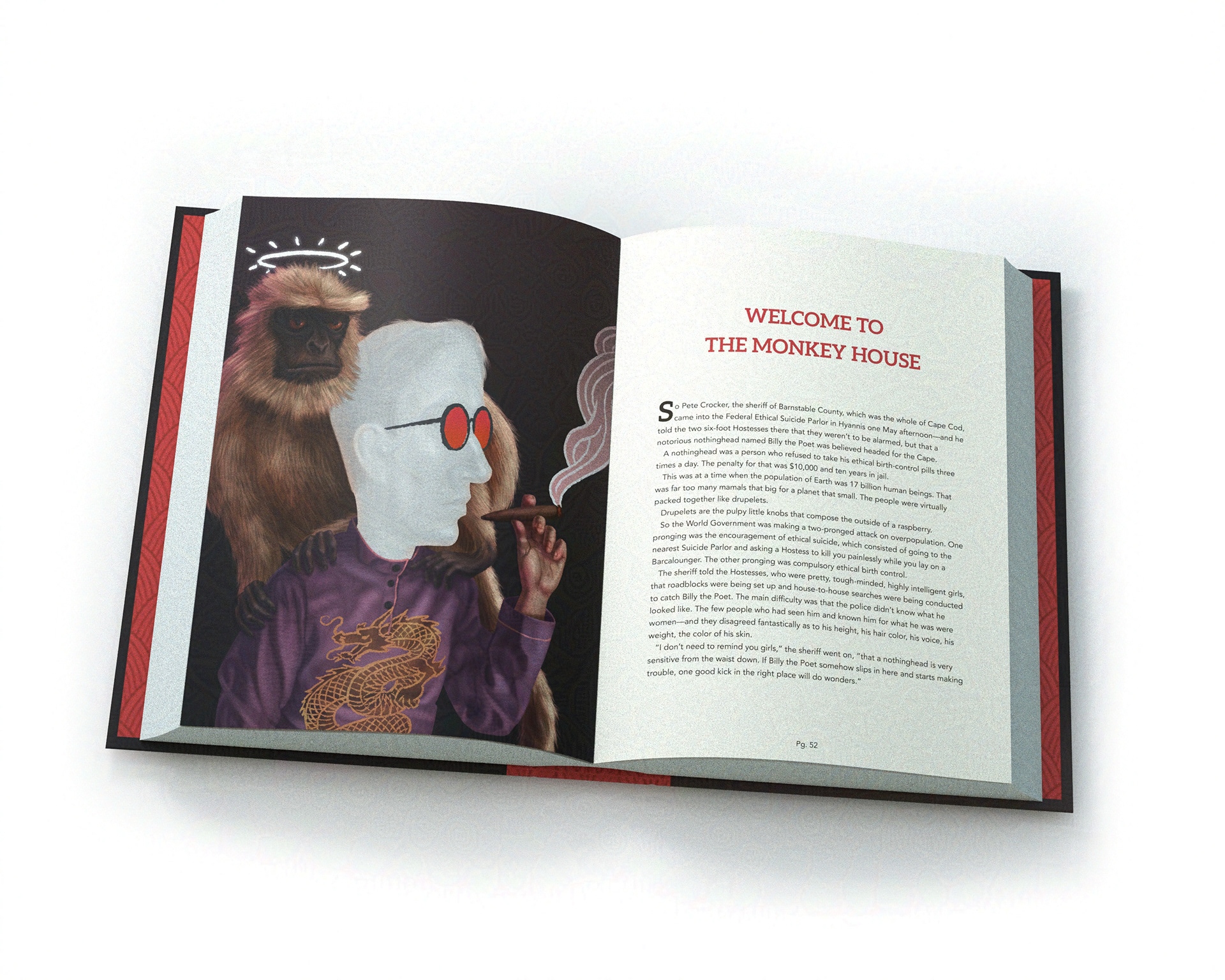 Illustration and design for Kurt Vonnegut's collection of short stories "Welcome to the Monkey House".